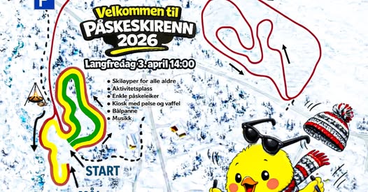 Langfredag, 3.april, arrangerer de påskeskirenn for barn opp til 15 år. Premie og diplom til alle. Påmelding 11:30 ved kiosken.Les mer.